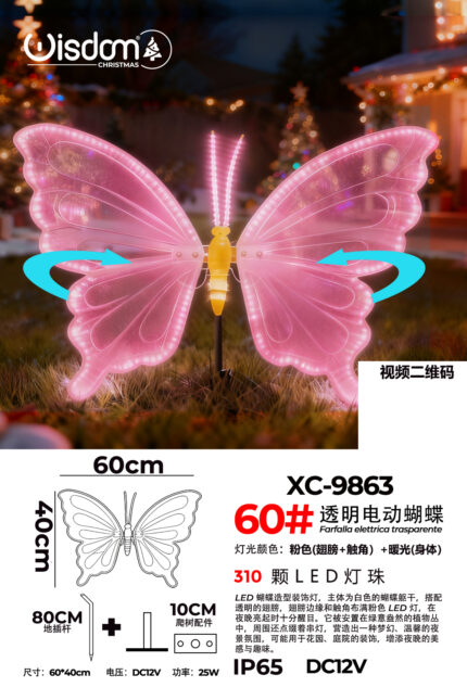 Figura luminosa Farfalla Trasparente LED Luce Calda+Rosa IP65 per uso esterno dimensione 45x40cm