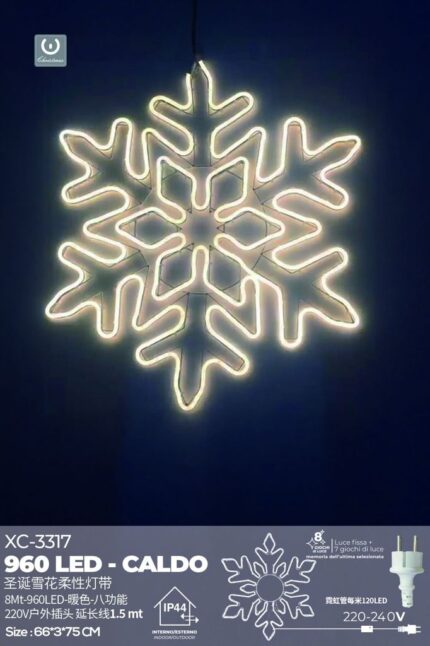 Figura luminosa Fiocco di Neve 960 LED Caldo, con 8 giochi di luce , 66×75 cm