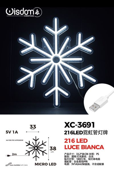 Figura luminosa Fiocco di Neve 216 LED , 38×33 cm , attacco USB