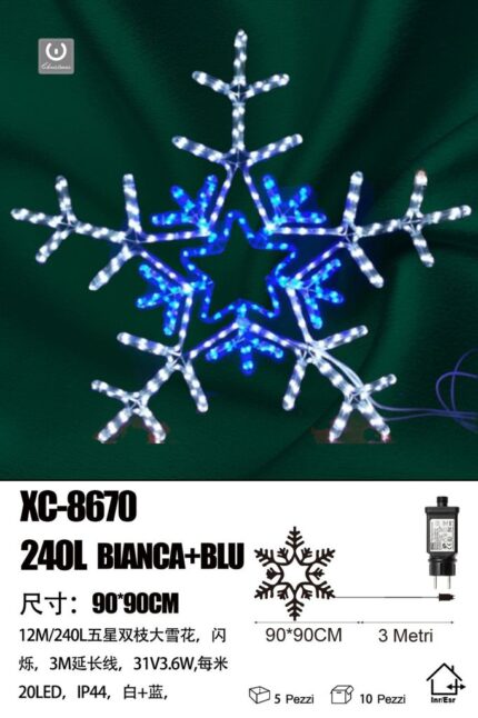 Figura luminosa Fiocco di Neve 960 LED Blu + Bianco 8 giochi di luce , 66x75cm