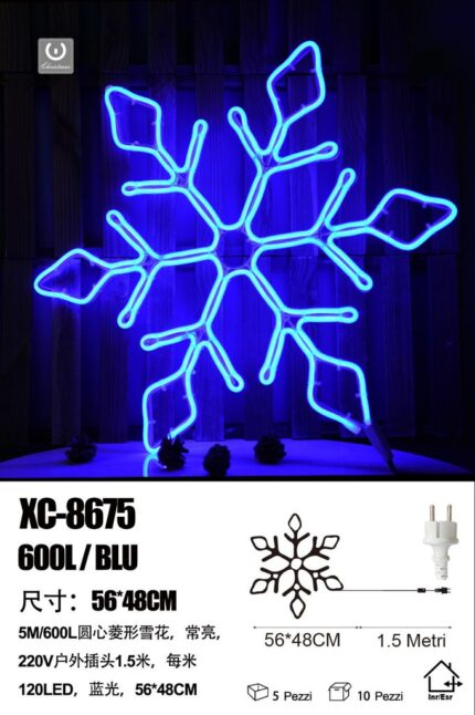 Figura luminosa Fiocco di Neve a Diamante 600LED Blu,56×48 cm