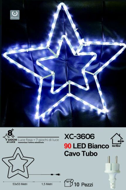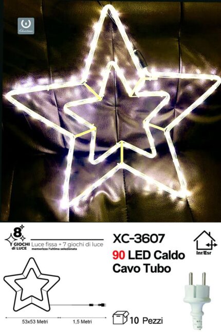 Figura luminosa Stella di Natale 90 LED luce Calda con 8 giochi, 53×53 cm