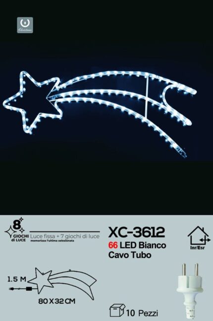Figura luminosa Stella Cometa 66 LED Bianco Freddo con 8 giochi di luce , 80×32 cm,