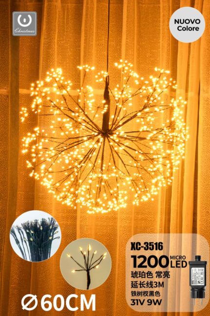 Lampada a forma di Dente di Leone 1200 LED color Ambra, diametro 60 cm