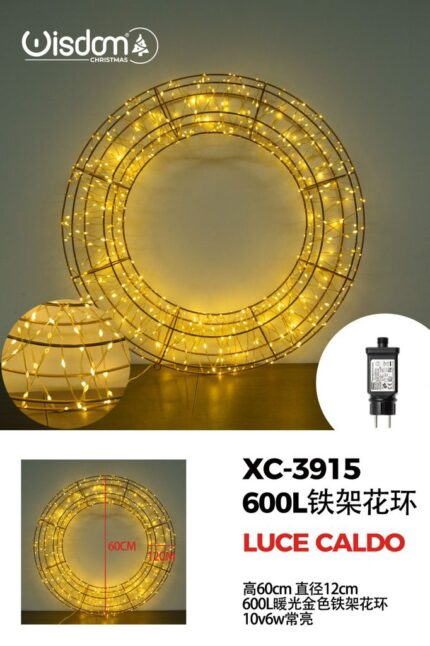 Ghirlanda 600 LED Oro Caldo,con cornice in ferro, H 60 cm