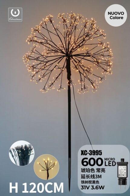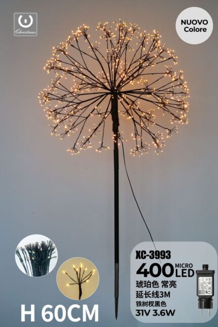 Lampada da terra a forma di Dente di Leone filo in ferro Nero da 400 LED color Ambra, H 60 cm