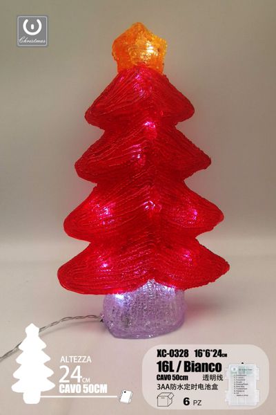 Albero Rosso, luminoso linea trasparente, 16 LED , luce Bianca, 24cm, con vano batteria impermeabile