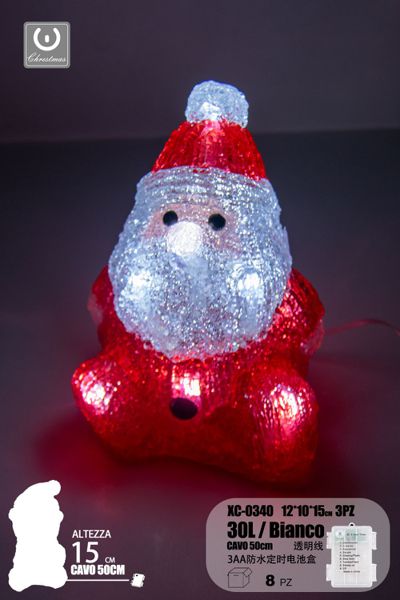 Babbo Natale , luminoso linea trasparente, 30 LED , luce Bianca, 15 cm, con vano batteria impermeabile