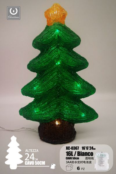 Albero Verde , luminoso linea trasparente, 16 LED , luce Bianca, 24cm, con vano batteria impermeabile