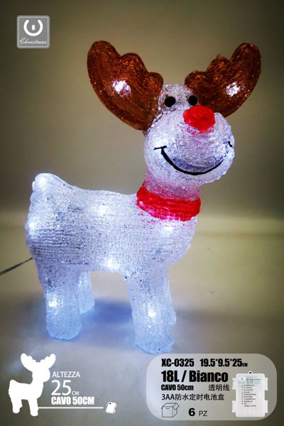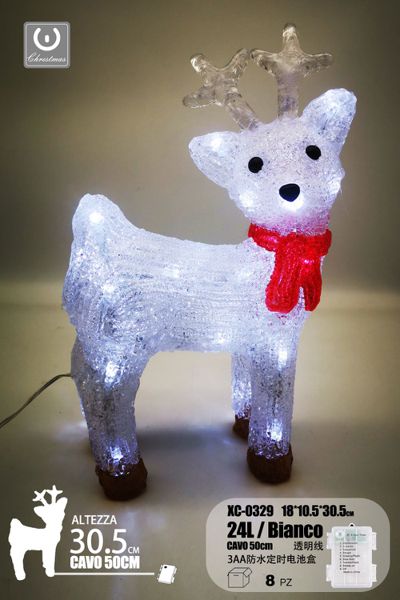 Cervo, 18 LED, linea trasparente, luce bianca, 25cm