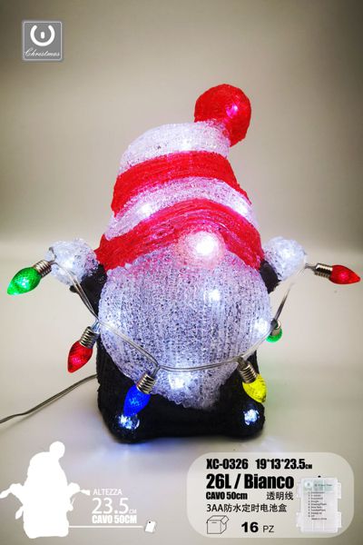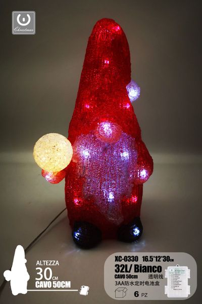 Gnomo con luce , linea trasparente, 32 LED, 30 cm , con vano batteria impermeabile