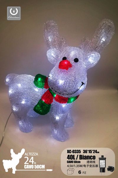 Cerbiatto luminoso linea trasparente, 40 LED , luce Bianca, 24 cm