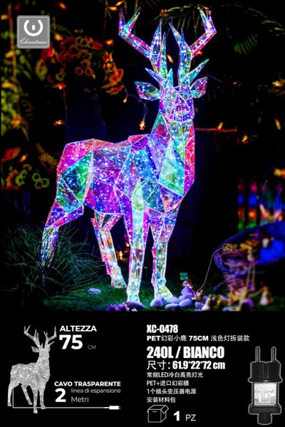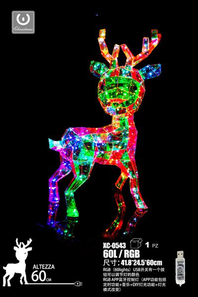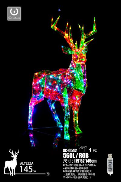 Cervo con pellicola Iridescente, 560LED , luce RGB, 145 cm, attacco USB