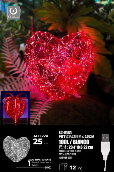 Cuore Rosso Irridescente 100 LED, luce Bianca, 23,4×10,6×22 cm , con Attacco USB