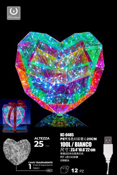 Cuore Luminoso 100LED,con pellicola Iridescente, luce Bianca, 25 cm, attacco USB