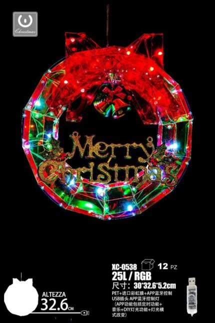 Ghirlanda luminosa 25 LED RGB,30×32,6×5,2 cm ,Attacco USB, bluetooth per funzioni peronalizzabile e musica