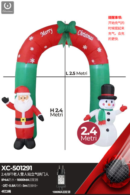 Gonfiabile Arco Natalizio con Babbo Natale e Pupazzo di neve con luci altezza 2,4 metri IP44 adatto per uso esterno