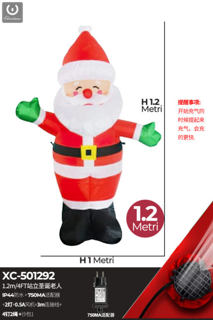 Gonfiabile Natalizio a forma Babbo Natale in piedi con luci altezza 1,2 metri IP44 adatto per uso esterno