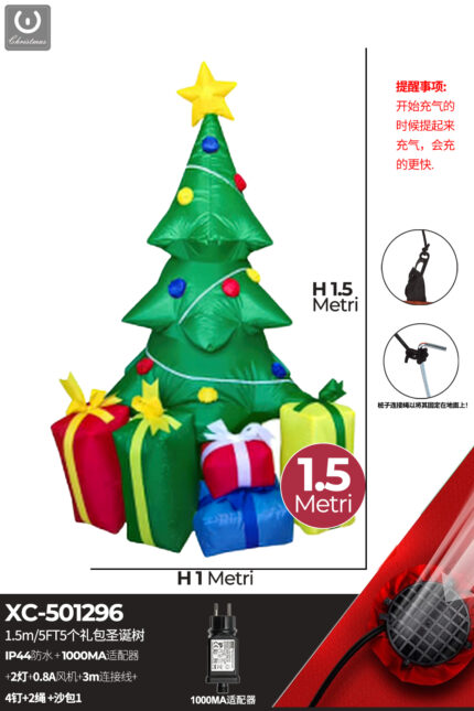 Gonfiabile Natalizio a forma Albero di Natale con luci altezza 1,5 metri IP44 adatto per uso esterno