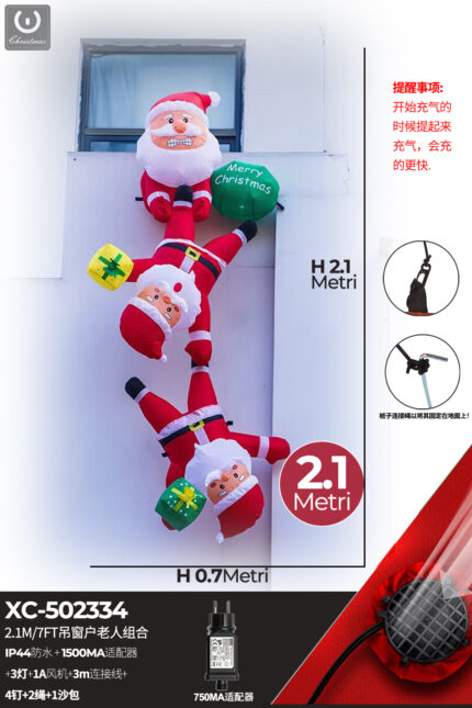 Gonfiabile Natalizio a forma di Babbo Natale che si arrampica con luci altezza 2 metri IP44 adatto per uso esterno