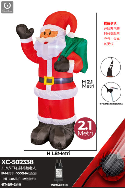 Gonfiabile Natalizio a forma di Babbo Natale che saluta con luci altezza 2,1 metri IP44 adatto per uso esterno