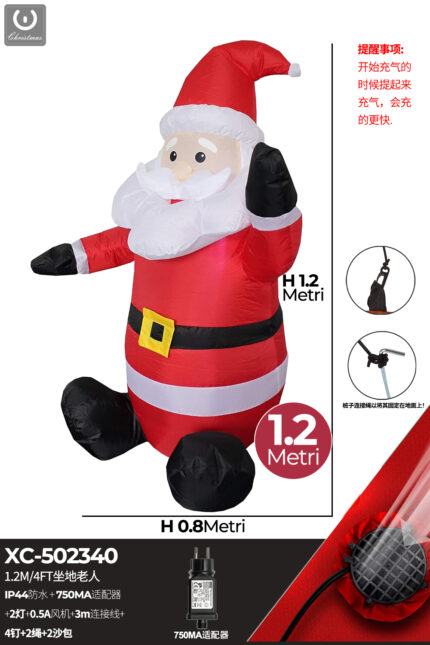 Gonfiabile Natalizio a forma Babbo Natale seduto con luci altezza 1,2 metri IP44 adatto per uso esterno