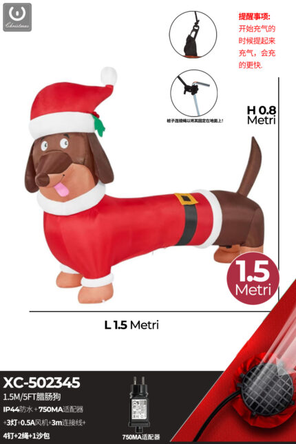 Gonfiabile Natalizio a forma Cagnolino con luci altezza 0,8 metri IP44 adatto per uso esterno
