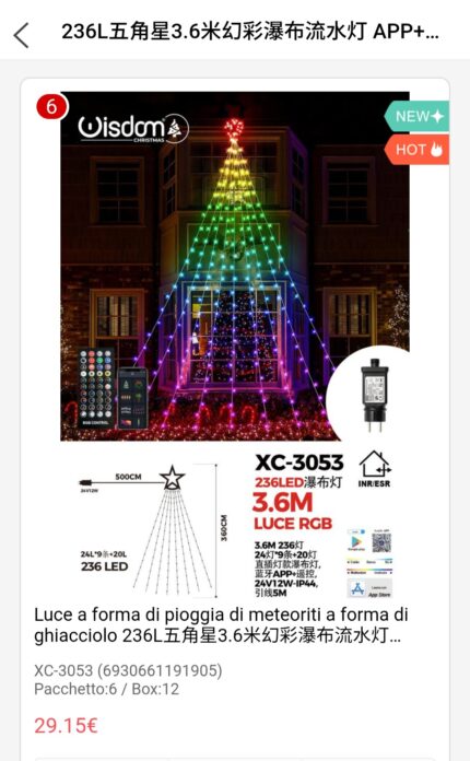 Catena luminosa a pioggia decorazione Natalizia 236 LED RGB controllo app o telecomando