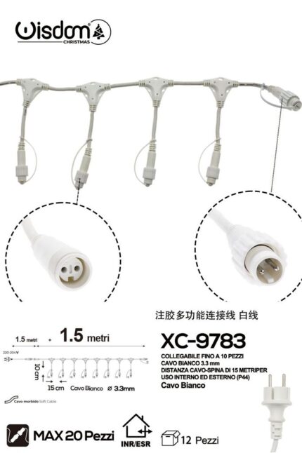 Giunto per tenda , cavo bianco ,1,5 mt , 10n teste , collegabile max 20 pz