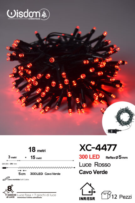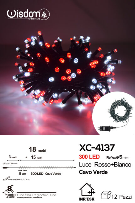 Catena luminosa 300 LED luce rossa+bianca da 18 metri con 8 giochi di luce ip44 per uso interno esterno