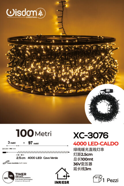Catena luminosa 4000 LED luce calda da 100 metri ip44 per uso interno esterno con funzione timer on-off