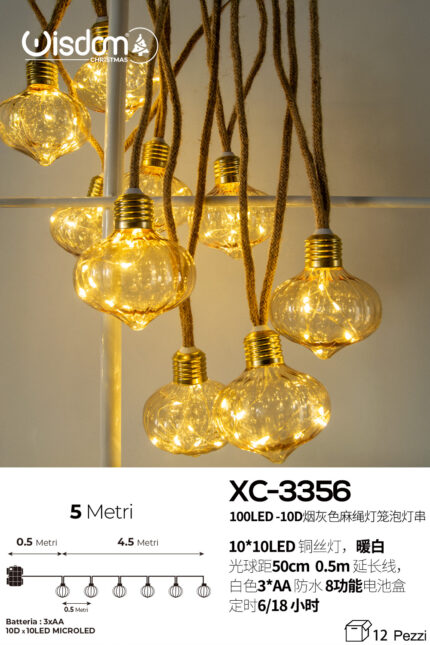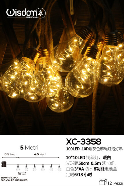 Catena luminosa 100LED luce calda 10 lampade con corda da 5 metri alimentazione a pile