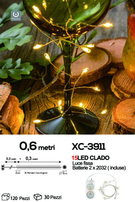 Catena luminosa 15 microLED luce calda da 0,6 metri alimentazione a pile per uso interno