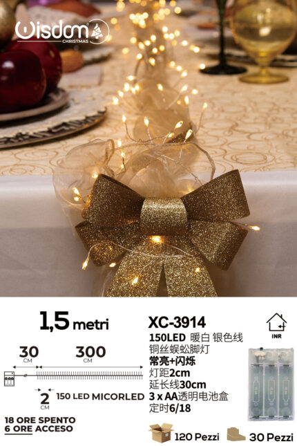 Catena luminosa 150 microLED luce calda da 1,5 metri alimentazione a pile per uso interno