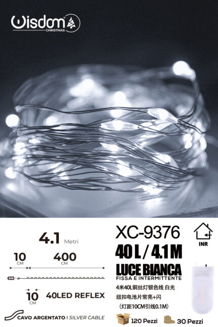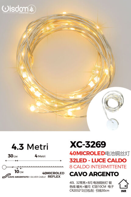Catena luminosa 40 microLED REFLEX da 4,3 metri (32LED luce bianca + 8luce bianca intermittente alimentazione a pile per uso interno