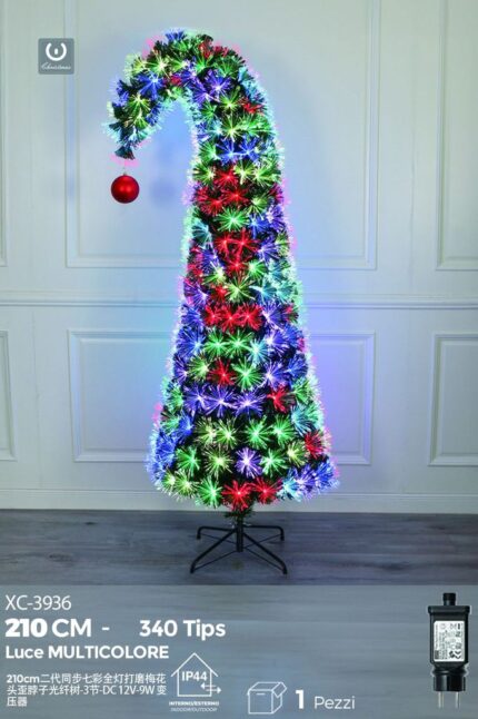 Albero in fibra ottica con puntale curvo, multicolore 340 punte, 210 cm
