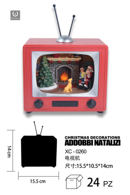 Televisore rossa retrรฒ Natalizia a schermo con Babbo Natale carillon 8 musiche Natalizie (14cmH) alimentazione a batterie