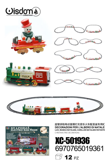 Trenino Natalizio + Pupazzo di neve con luci e musica da appendere sopra l’albero