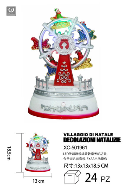 Ruota panoramica rossa Natalizia in resina con luci LED 8 musiche Natalizie (18,5cmH) alimentazione a batterie