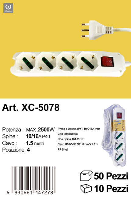 Multipresa ciabatta elettrica lunghezza cavo 1,5 metri presenta 4 prese bipasso e 2 prese schuko
