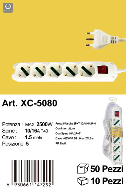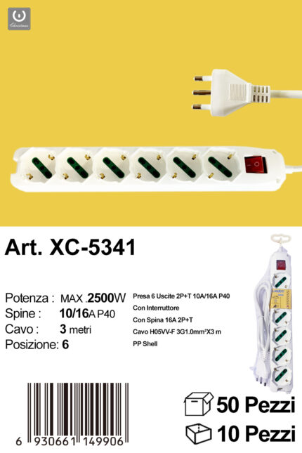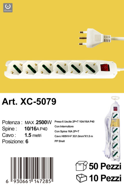 Ciabatta presa bipasso a sei posizioni cavo da 1,5 metri potenza max 2500w con prese uscite da 10 e 16A