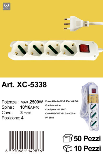 Ciabatta presa bipasso a quattro posizioni cavo da 1,5 metri potenza max 2500w con prese uscite da 10 e 16A