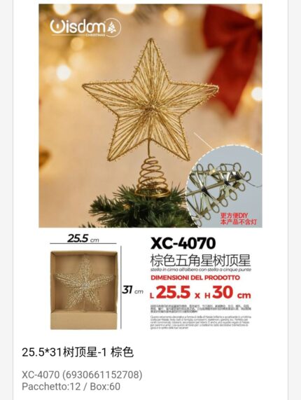 Puntale per albero natalizio a forma di stella spirale color oro dimensione 25x30cm