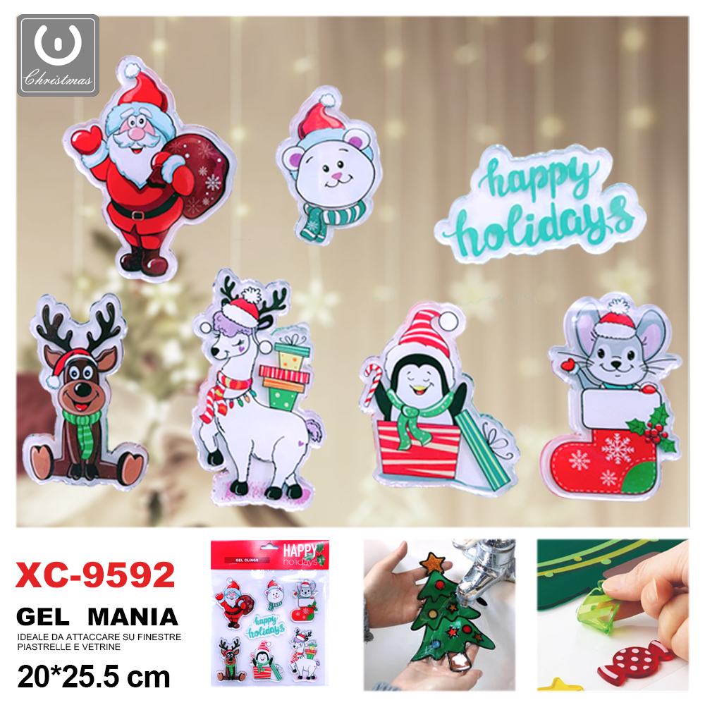 7 Adesivi in gel per decorazioni natalizie tema personaggi Natalizi dimensione 20×25,5cm ideale da attaccare su finestre e vetrine