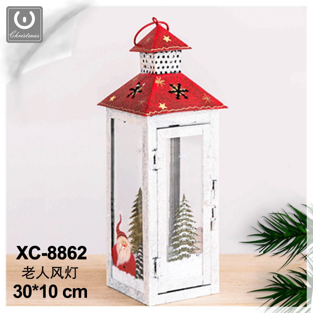 Addobbo decorativo Natalizio lanterna bianca e rossa in ferro con Babbo Natale dimensioni 30x10cm