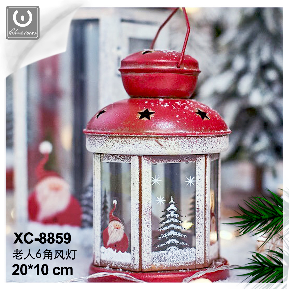 Addobbo decorativo Natalizio lanterna in ferro con Babbo Natale dimensioni 14x8cm