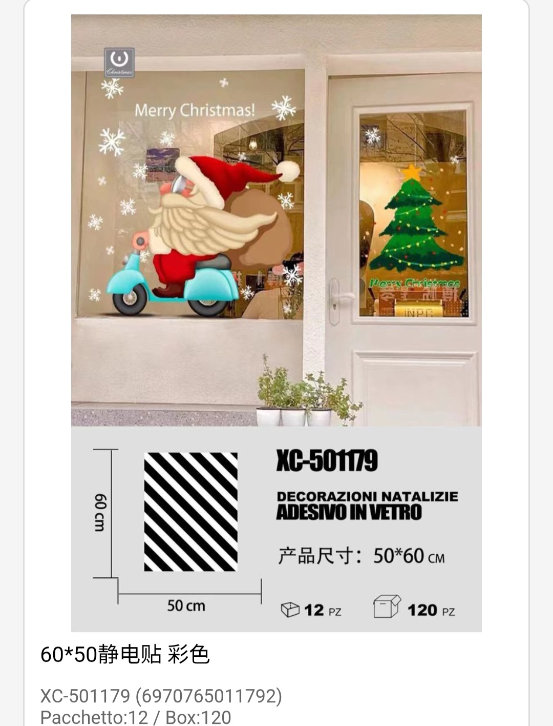 Adesivi natalizi con babbo natale e scritta merry christmas in pvc per finestre e decorazioni dimensioni 60x50cm