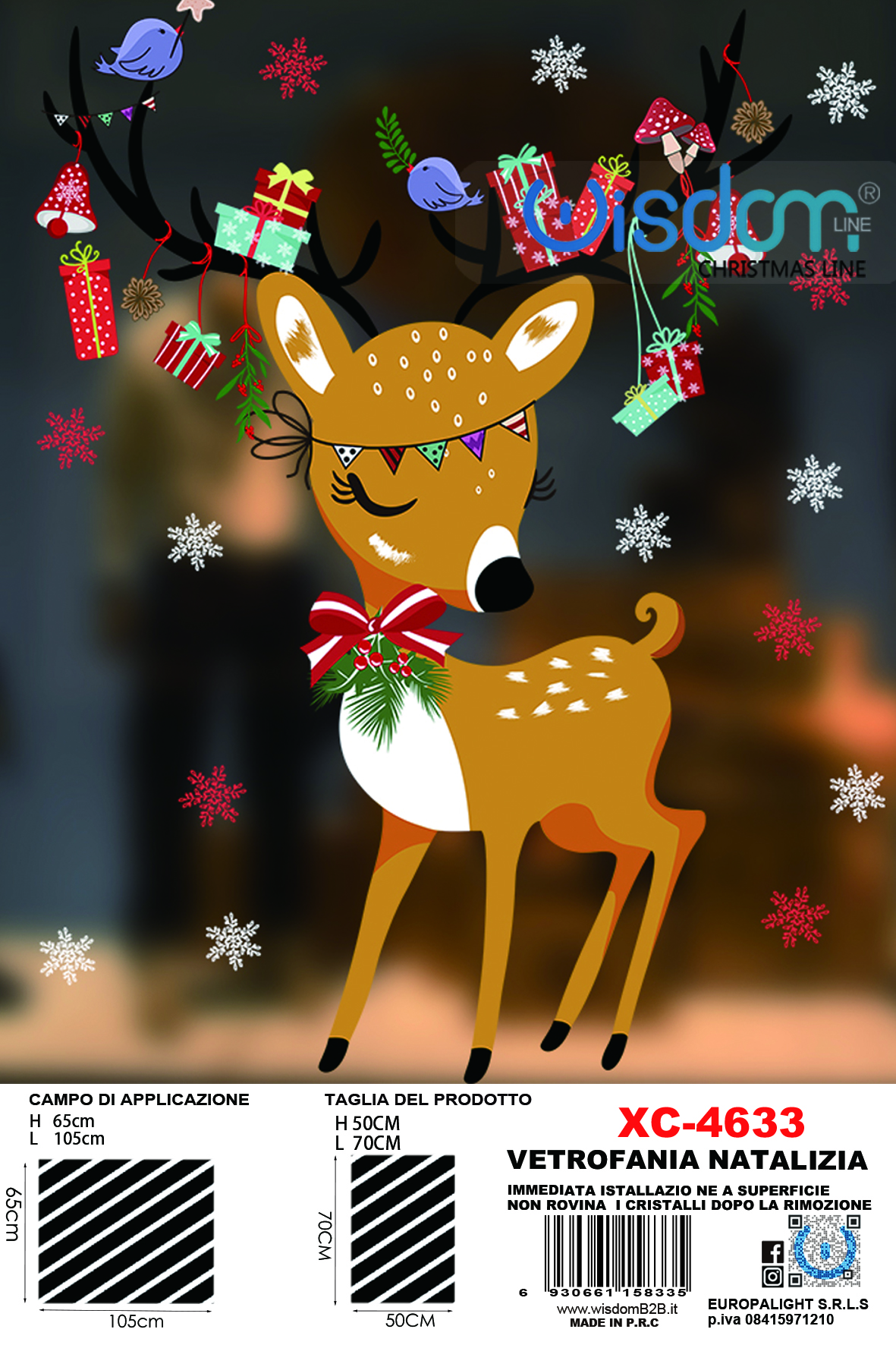Adesivi natalizi con renna in pvc per finestre e decorazioni dimensioni 50x70cm