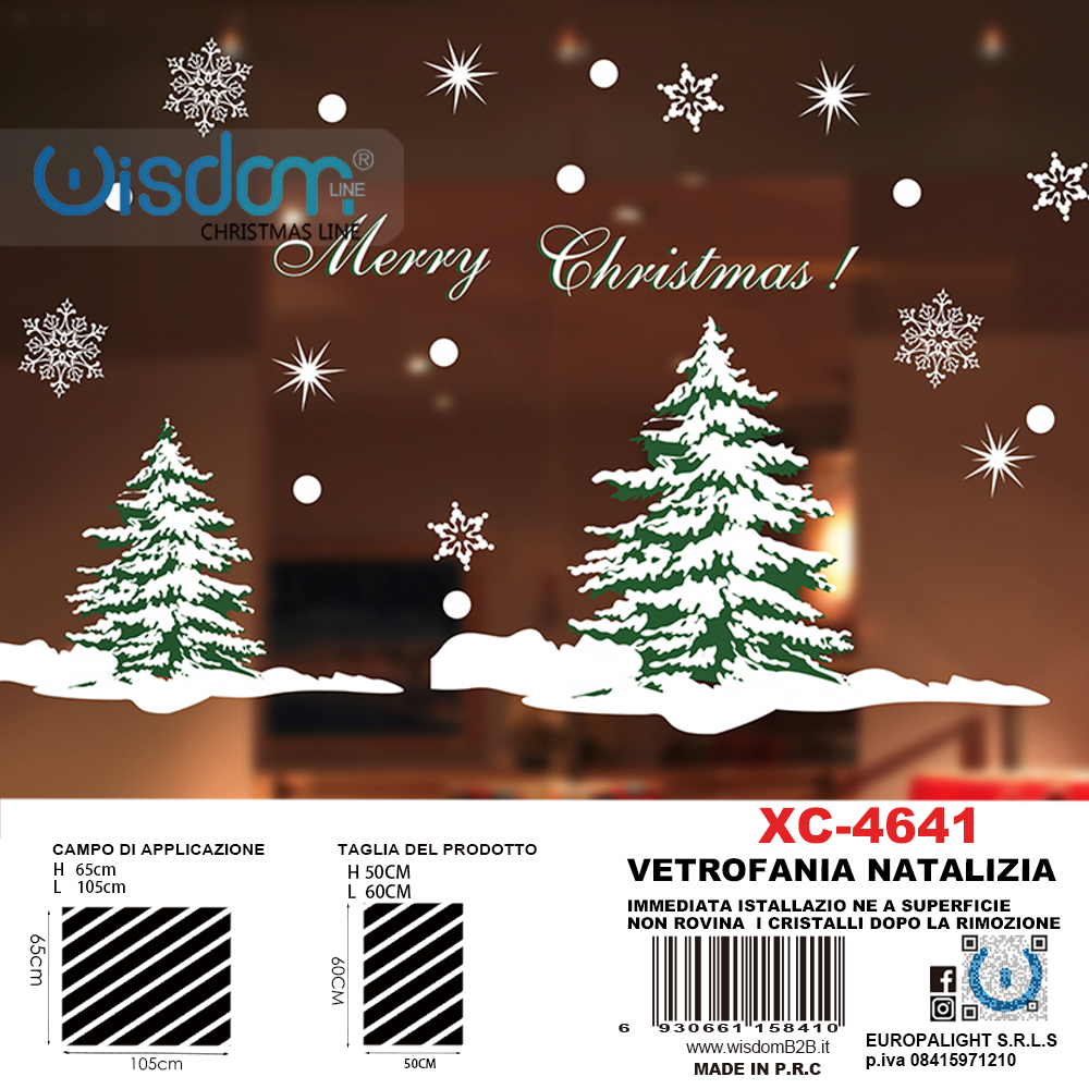 Adesivi natalizi con sfondo alberi innevati in pvc per finestre e decorazioni dimensioni 50x60cm