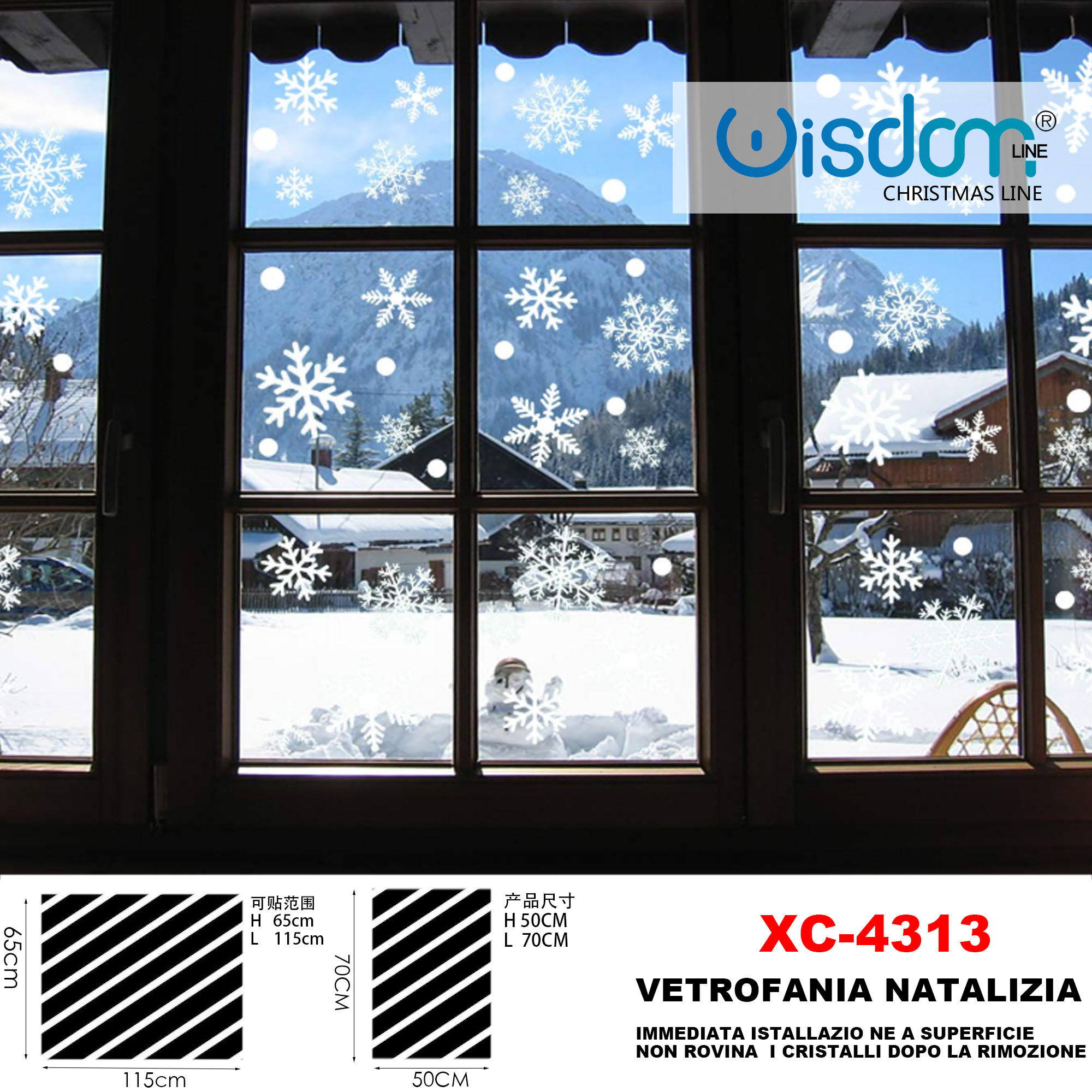 Adesivi natalizi con sfondo Merry christmas e paesaggi in pvc per finestre e decorazioni dimensioni 50x70cm